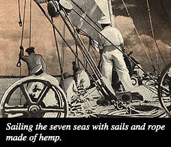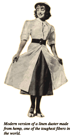 It is generally believed that all linen is produced from flax. Actually, the majority comes from hemp -- authorities estimate that more than half of our imported linen fabrics are manufactured from hemp fiber. Another misconception is that burlap is made from hemp. Actually, its source is usually jute, and practically all of the burlap we use is woven from laborers in India who receive only four cents a day. Binder twine is usually made from sisal, which comes from the Yucatan and East Africa.