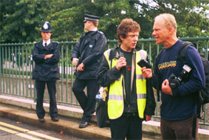 Unfortunately, there was a disagreement at this point between the organisers and Free Rob which ended with him not coming on the march and as a result getting arrested. To date I have no information on what happened to him.