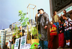 The Cannabis Coalition organised a second demonstration in London in 2001 following the successful, if somewhat damp, Cannabis Carnival held in June.