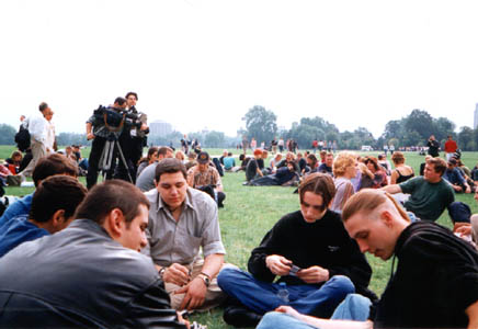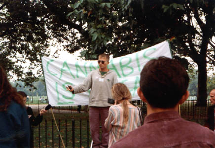 We'd heard about the plans for a "Turn yourself in" day organised by Mr Free Cannabis (Rob) from Glastonbury. The idea was to openly use cannabis and then go along to the local police station and, well, turn yourself in - "Please arrest me, I'm a cannabis user". Tthere seemed no better place to do this than in central London, speakers corner in Hyde Park.