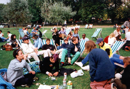 The picnic started with speeches at Speakers Corner where a small crowd had gathered. A few uninterested police looked on as people started rolling suspicious looking cigarettes, but after a while the hard tarmac got too much, so we sauntered onto the grass of Hyde Park and began the picnic.