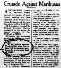 Anslinger's hype: 'If the hideous monster Frankenstein came face to face with the monster marihuana, he would drop dead of fright.' |