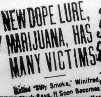 Since smoking marihuana was associated with wild music and crazy behaviour - and with Negroes - the authorities moved quickly to stamp it out. From 1910 through to the end of the 1930's, New Orleans government officials and media conducted a vicious, racist press campaign that was to set an unseemly precedent for the anti-pot propaganda to come. New Orleans was first to ban the weed, in 1923, and all Louisiana followed suit in 1927. By the time that Prohibition (of alcohol) was repealed in 1933, seventeen States had banned cannabis.