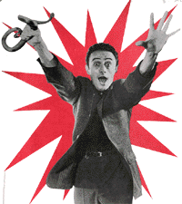 This full-length portrait shows the Sheik wearing no top but, staying within the bounds of decency, wearing corduroy knickers. Say it' it's fun. "Nero's nifty knickers are below his nobbly knockers." Okay, boys and girls, let's try it now without blowing the candle out. |