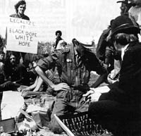 Despite the punks' disdain for the hippy, dippy connotations of cannabis, the pro-legalisation movement grew strong in the late seventies and became more militant. In Britain, the Legalise Cannabis Campaign was inaugurated with a rally held in Westminster Hall on June 3rd, 1978, and officially launched on September 28th, the 50th anniversary of the day the first anti-cannabis legislation came into effect. Before then, the banner of legalisation had been waved most prominently by Release, the drugs advisory charity set up by Caroline Coon and others in response to the events of 1967. | |||