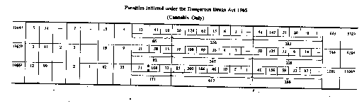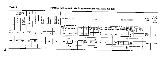 A. penalties inflicted for cannabis offences under the Dangerous Drugs Act 1965 in the years 1964-1966 and for offences under the Drugs (Prevention of Misuse)Act 1964 in the years 1965 and 1966;