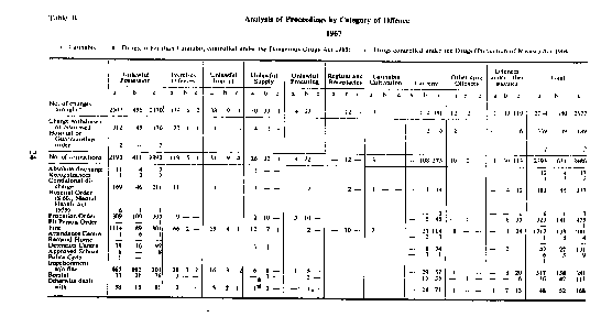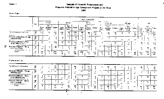 C. cannabis prosecutions and disposals in 1967 related to age groups and weights of the drug.