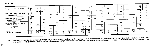 80. These tables show some notable features about the cases dealt with by courts in 1967. Over two-thirds of all cannabis offenders (and nearly all found guilty of possessing more than I Kg ) did not have a record of non-drug offences. Nine out of ten of all cannabis offences were for possessing less than 30 grams. About a quarter of all cannabis offenders were sent to prison (or borstal, detention centre, or approved school); only about 13ΓΈ/G were made subject to a probation order; and about 17% of first offenders were sent to prison. There was notably greater emphasis on fines and imprisonment for possession of cannabis than of other dangerous drugs, but less use of probation and conditional discharge for possession of cannabis than for possession either of other dangerous drugs or of amphetamines and other 1964 Act drugs. Average fines for possession offences in 1967 were f36 in the case of cannabis: 39 in the case of other dangerous drugs and 28 10s. Od. in the case of 1964 Act drugs.